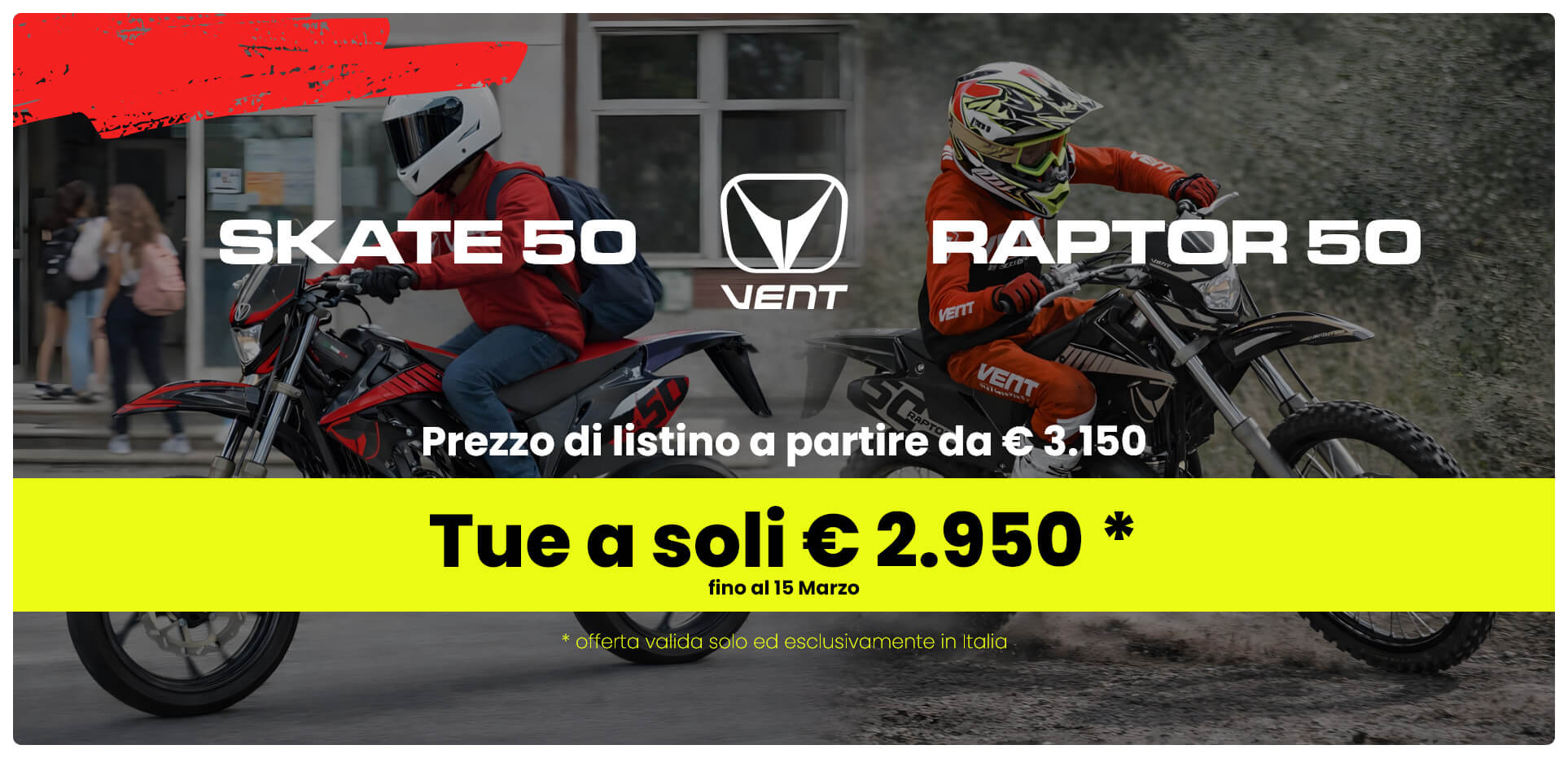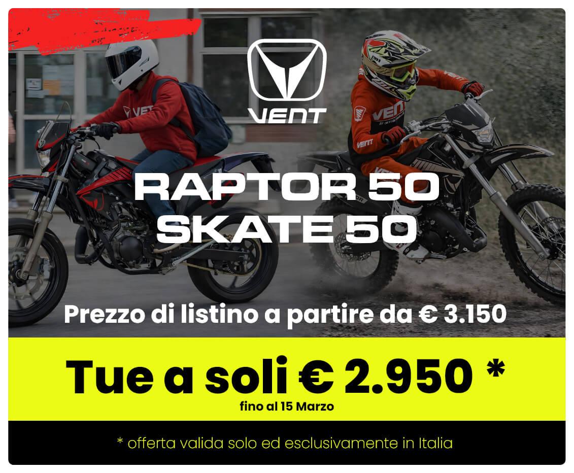 Passione, esperienza, affidabilità e qualità. Questi sono alcuni degli ingredienti che caratterizzano tutte le moto da enduro e motard di Vent, dai modelli 50 cc ai 125 cc 4T. Le gamme Baja e Derapage sono da sempre un punto di riferimento per i giovani che vogliono far parte del mondo delle due ruote, grazie all’ampia scelta tra colori e accessori. Vent nasce per raccogliere un’eredita importante…
